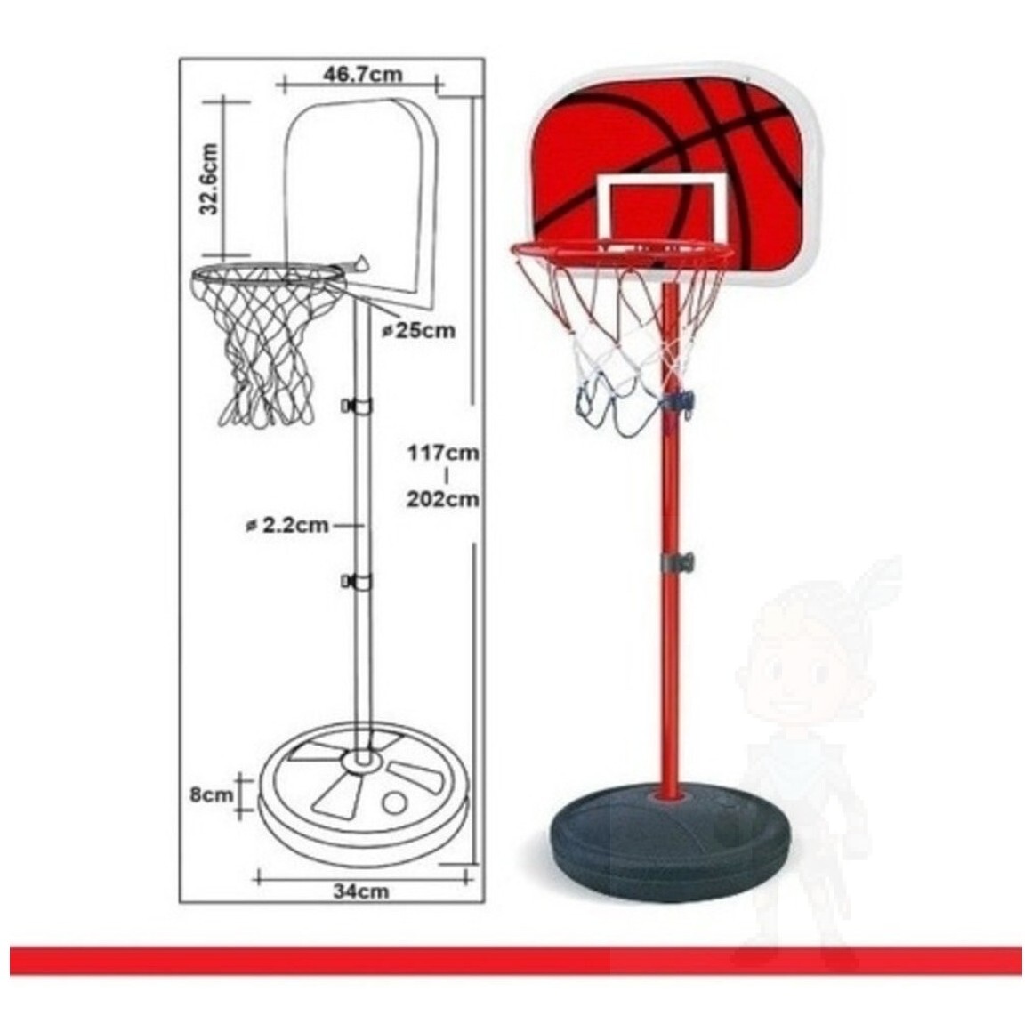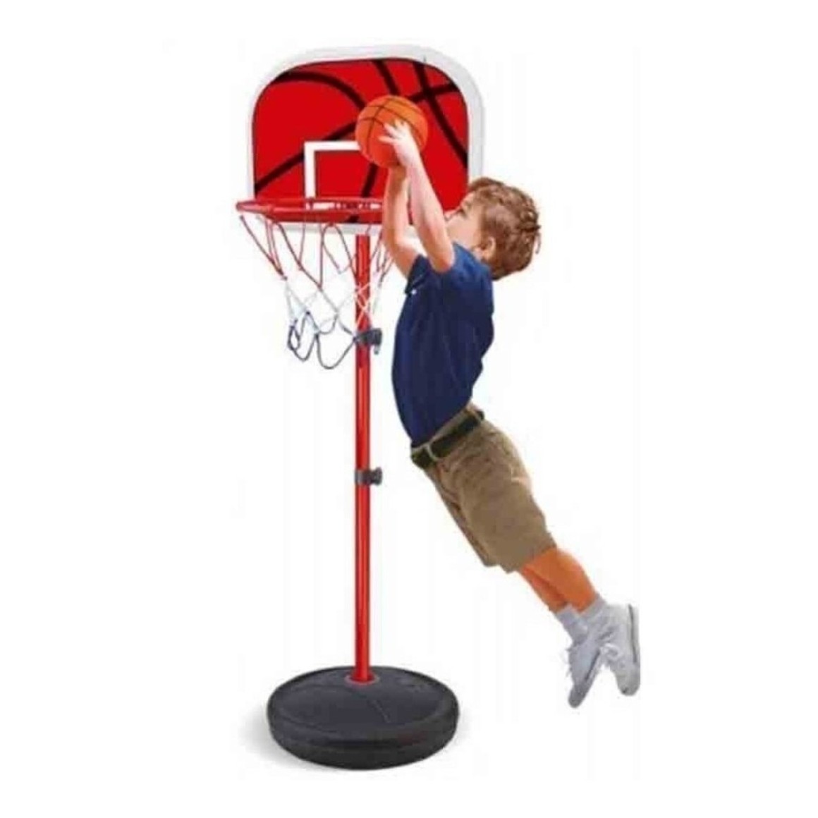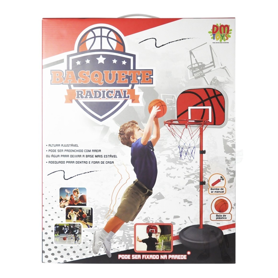Além disso, sua estrutura é ajustável para acompanhar o crescimento da criança e inclui uma bola de basquete de plástico e uma bomba de ar manual.